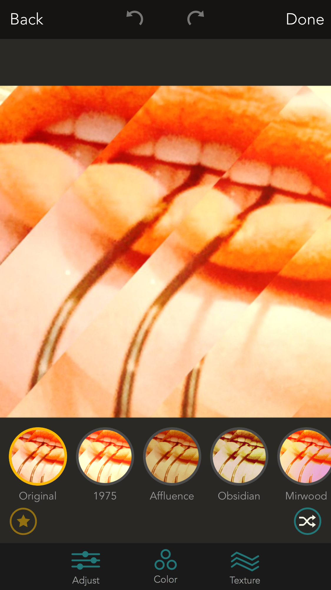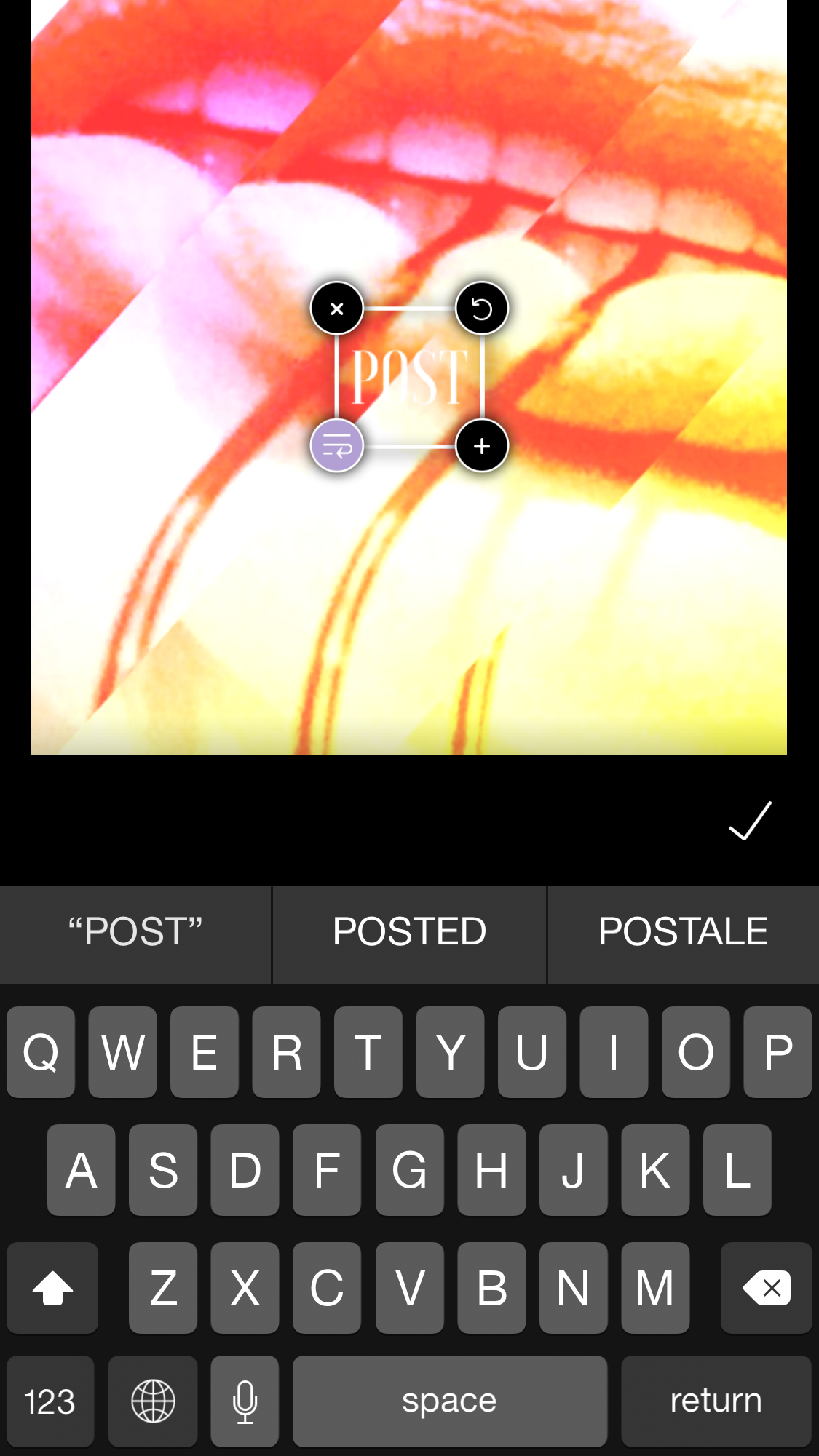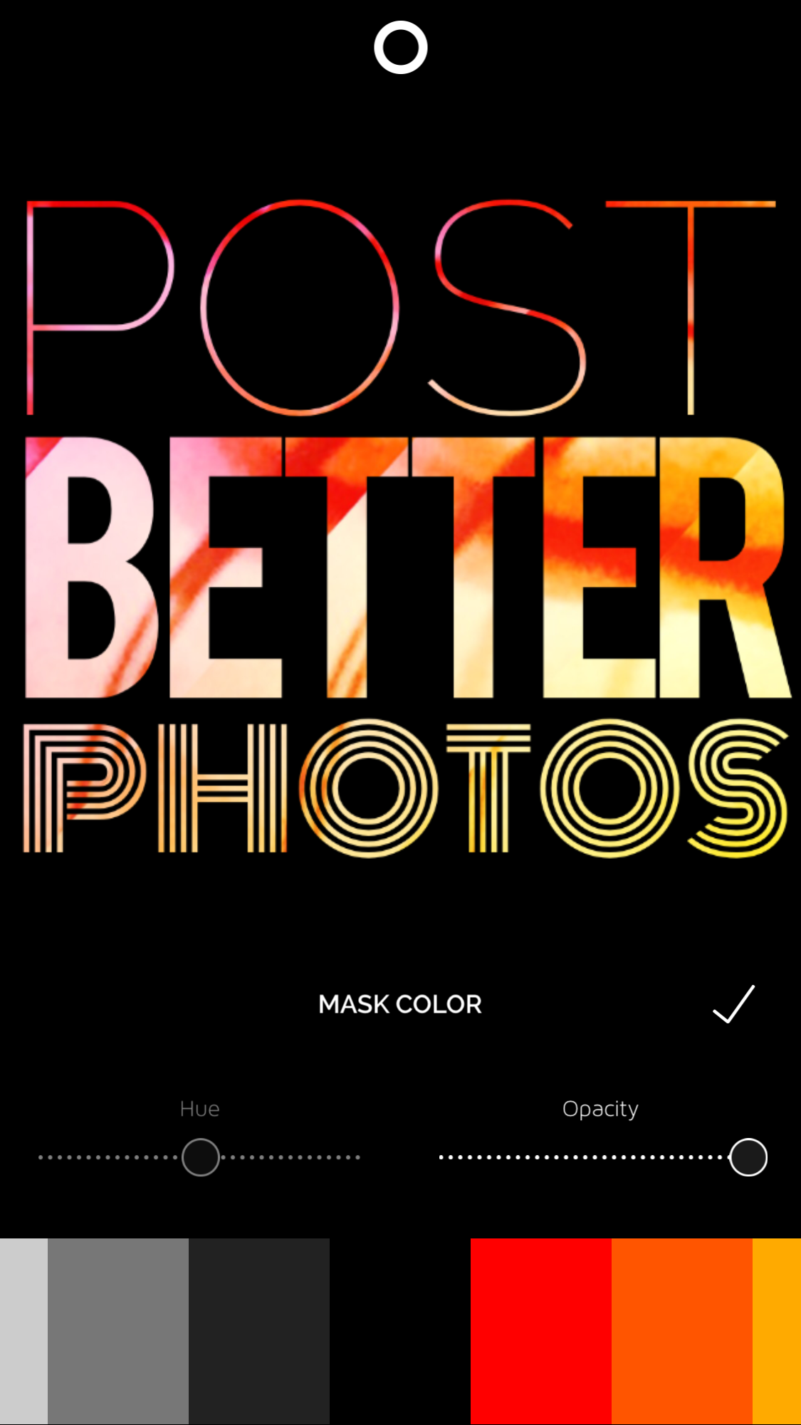 SHIFT is really great for altering color, creating inversions and adding style to your photos.  I chose this app for my image because I noticed that the lipstick I’m wearing in my selfie is really close in tone to everything else in the photo.  I felt it need a little color alteration to add interest.  When you open your saved image in the SHIFT app you will see the option to crop your image.  I know that I will be posting my photo to INSTAGRAM, so much of the time I will opt for a 1:1 ratio…. which means “square”.  SHIFT’s preset filters can be really easy, but for this image, I tapped the color feature located at the middle, bottom of the screen.  I opted for the filter named “Antigua”.  The filters are the colored boxes.  The circles above the colored boxes use a similar language to Photoshop.  You can alter the effect of the filter with these circles.  I chose “Overlay”.  The scale at the bottom alters hue and the scale at the top alters intensity.  TECH TIP…. tap the intersecting arrows on your color filter to change the position of your colors.  This app is cumulative, so I find that one selection looks better than layers of filters.  Click “DONE” and the image will save to your camera roll.